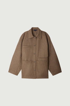 GRENADE is an oversized rosewood-colored organic cotton shirt. Wide cut and topstitched collar provide a relaxed style. Button placket and shirt-tail hem add a modern touch, while the material enhances color vibrancy.