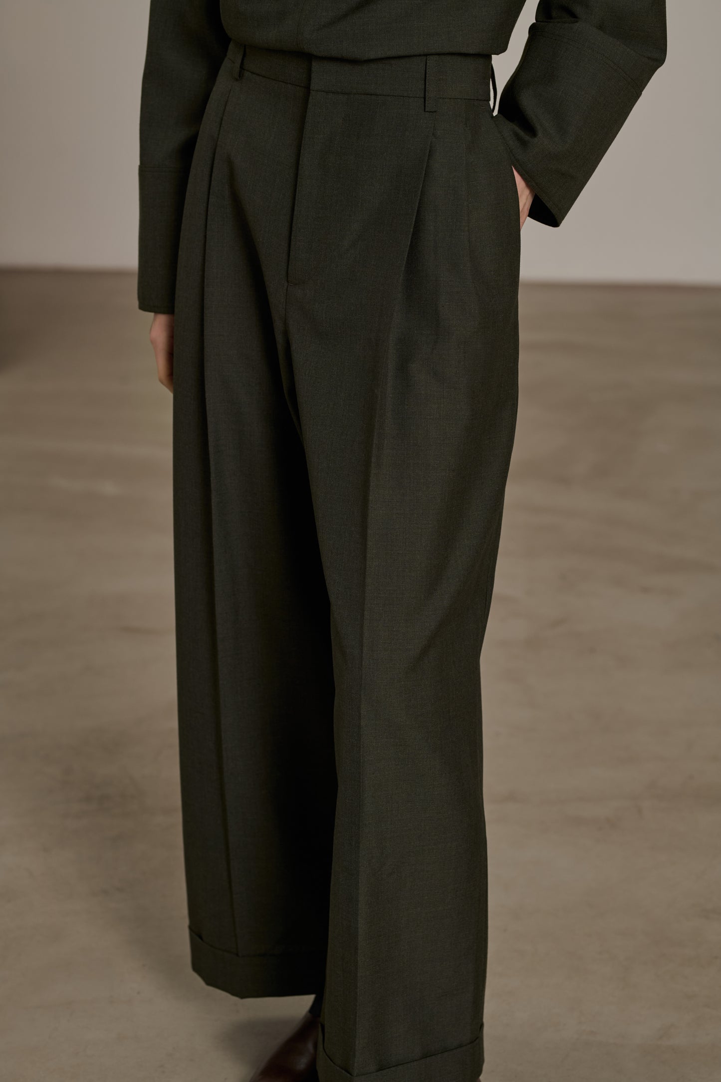 watson trousers Pleated trousers in speckled wool canvas